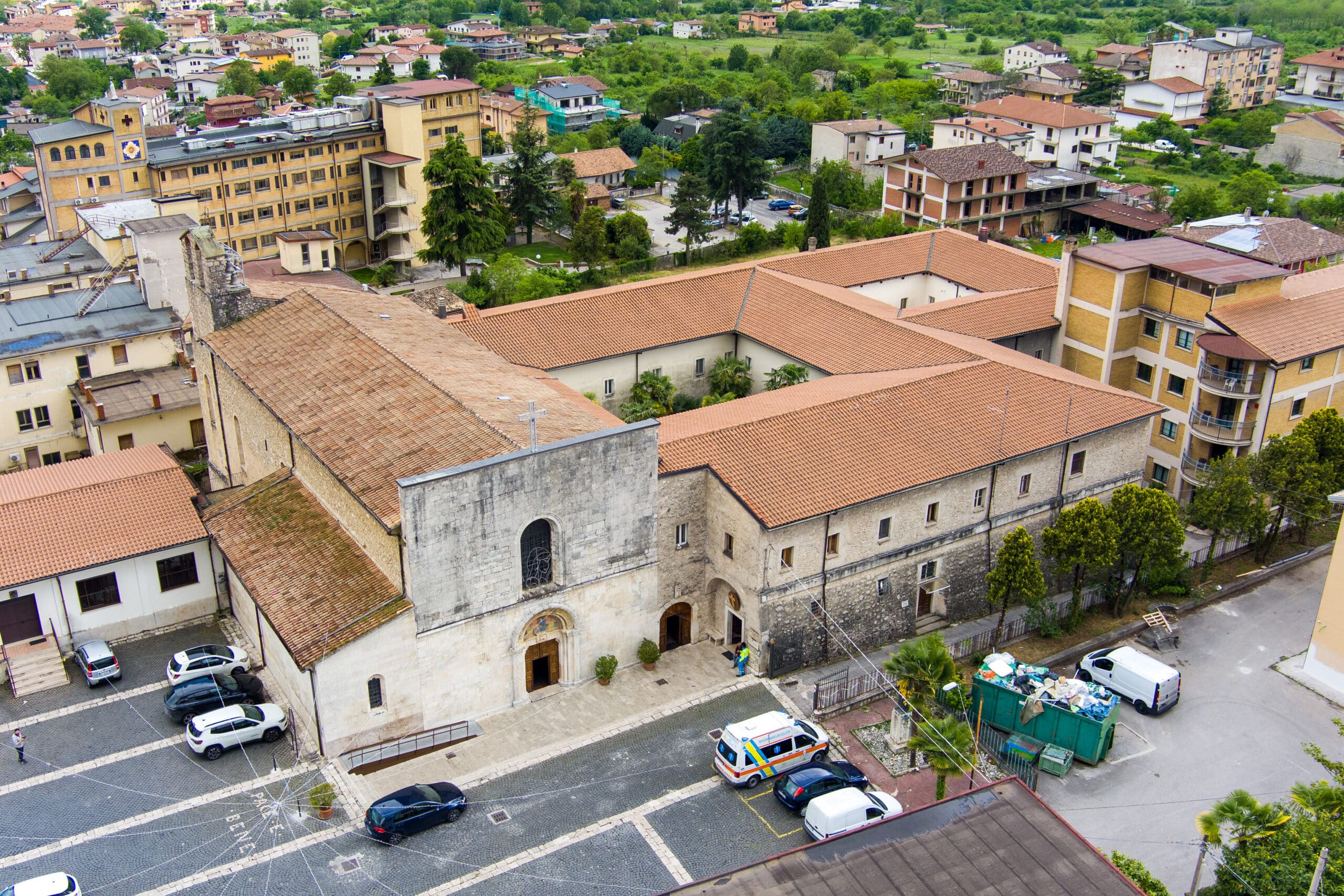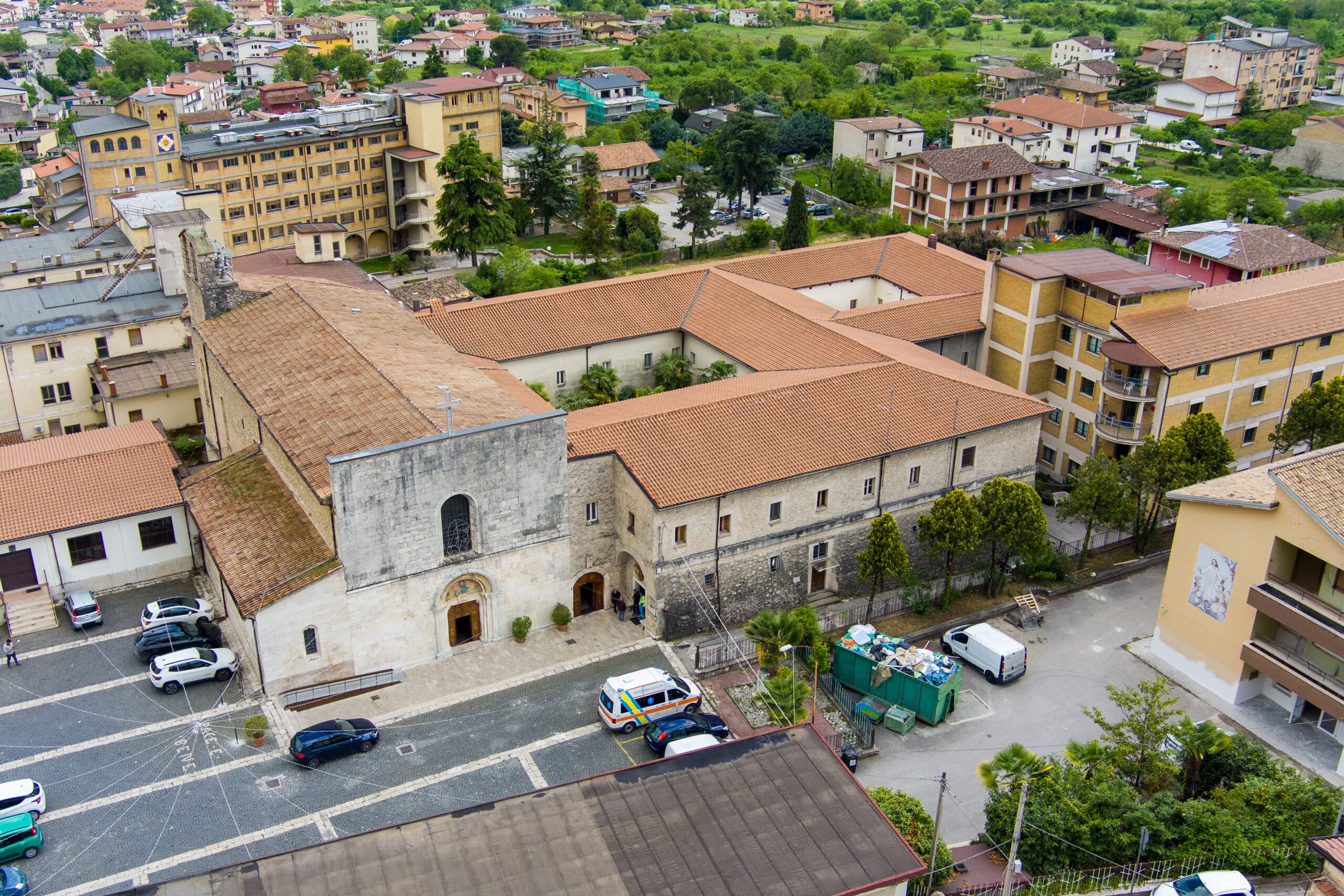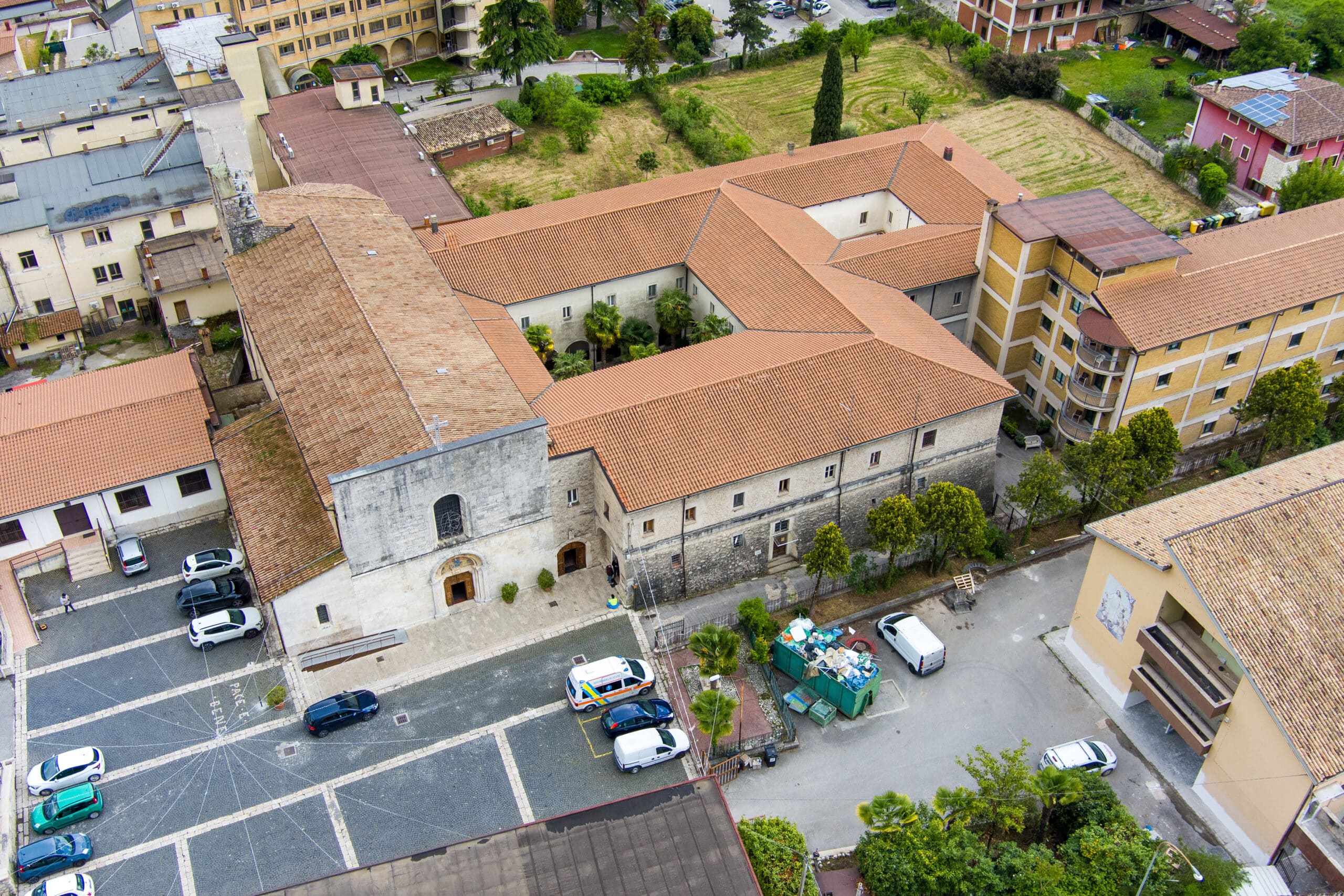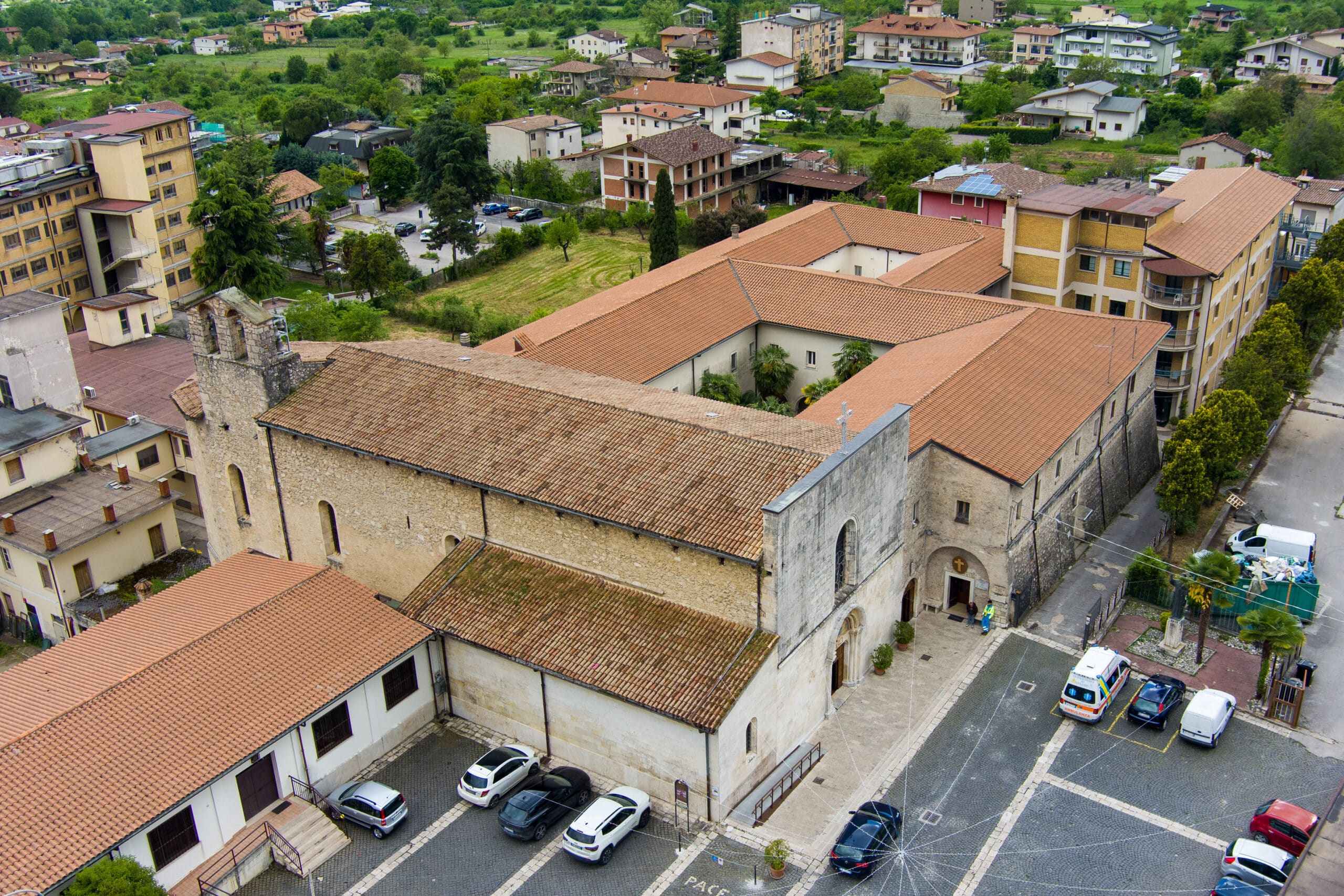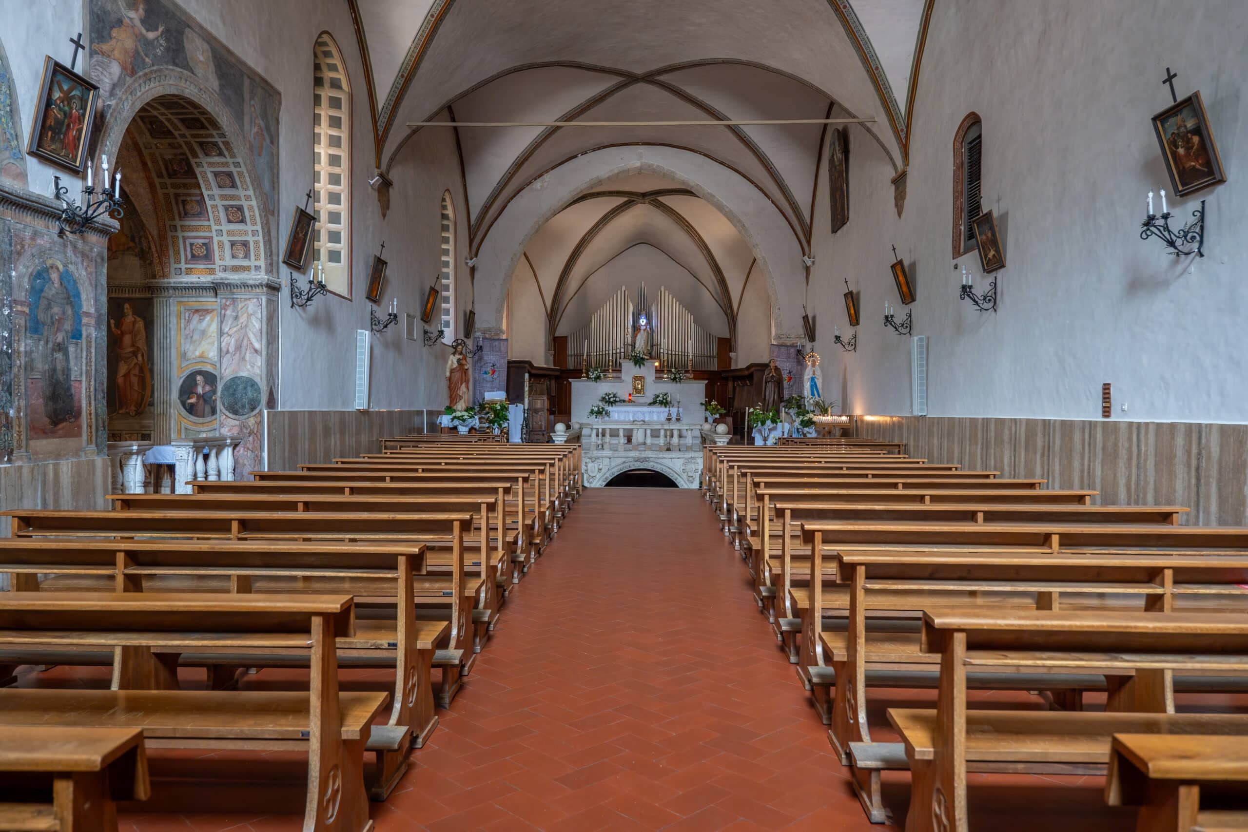 Annesso alla chiesa è il convento francescano con chiostro databile alla seconda metà del XV secolo, i pilastri del porticato sono contrassegnati dalle mezzelune dei Piccolomini.